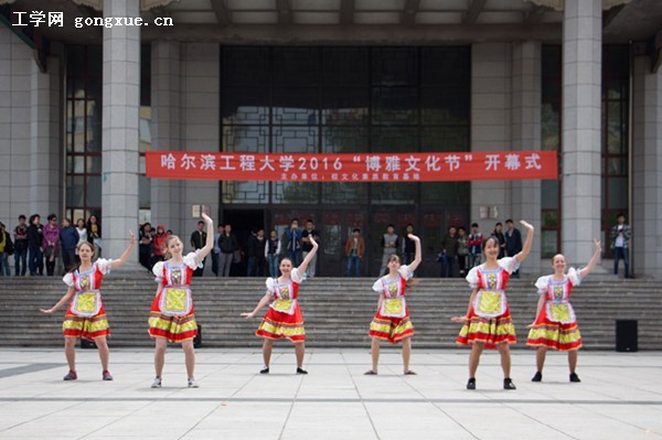 11点30分,开幕式在校艺术团学生歌舞表演中拉开序幕。校大学生艺术团、4U街舞团分别将东方古风歌曲与西方街头文化艺术的代表“街舞”相结合,体现了中西方文化的交融;国际合作学院留学生演绎经典俄罗斯民族舞蹈“喀秋莎”,飞鹭舞蹈团献上中华传统古风舞蹈,二者交相辉映,让在场观众体验到各个国家独特的传统文化。