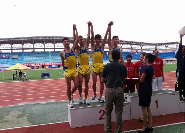 本届比赛中我校共派出11名运动员参加短跑、跳高、跳远、铁饼、铅球等比赛项目,其中9人进入前八名,7人夺得了奖牌。王克阳、张吉中、夏天洋、赵益墨在男子4ⅹ100米比赛中与来自全国37所高校的选手同台竞技,以优异的成绩获全国亚军;王萍在女子标枪、女子800米比赛中分获亚军和季军;王楠在男子跳远比赛中获亚军;我校张吉中同学以10秒69的成绩夺得男子100米比赛中的第四名。