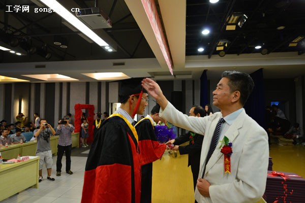 副校长杨冶和核学院院长张志俭为毕业生授予学位证和毕业证,并为毕业生拨穗。