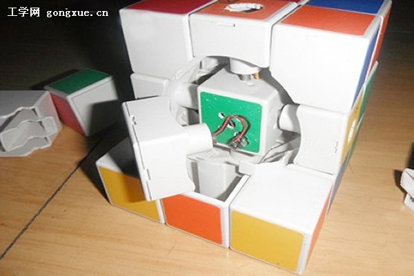 目前,市面上最流行的三阶魔方由富有弹性的硬塑料制成,由26个小正方体组成。在六个面上中间部位的小正方体叫做“中心块”,其与中心轴连接在一起,可以顺着轴的方向自由转动。魔方围绕三个中心轴转动,而这三个轴上的六个顶点即“中心块”是静止不动的。苏欣的团队利用这个规律,将音乐播放器的接线口以及控制钮设置在六个“中心块”上,将播放器嵌入了魔方之中。