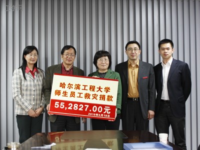 5月18日下午,我校师生向青海玉树地震灾区捐款仪式在黑龙江省青少年发展基金会举行。黑龙江省青少年发展基金会理事长谷为、秘书长杨晶,我校教育发展基金会秘书长尙鲜利、校团委书记殷敬伟、校工会副主席靳雪滨出席仪式。