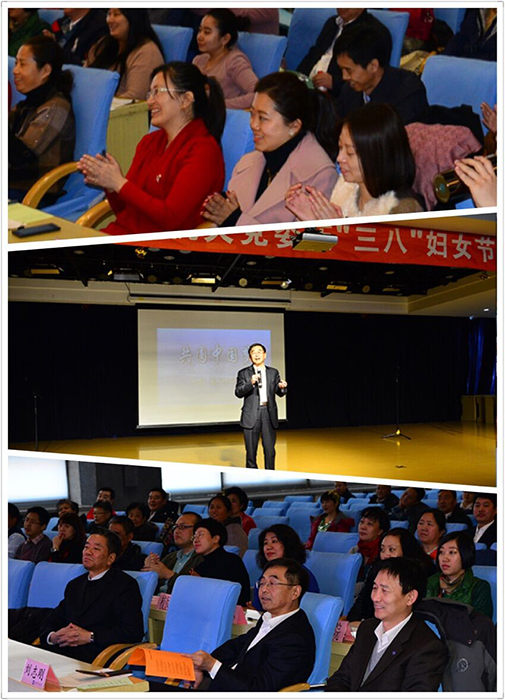 校长刘志刚,纪委书记兼机关党委书记姚利民,副校长杨冶到场祝贺并与教职工共同观看了演出。刘志刚首先代表学校向女教工祝贺节日。他鼓励大家利用难得的汇聚一堂的机会,表达自己、放松自己、表现自己。最后他预祝大家演出成功,祝愿学校的发展越来越好。
