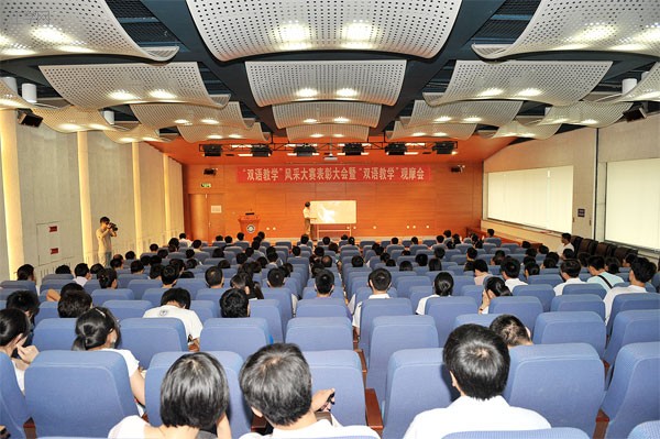 第二届“教书育人”风采大赛暨首届“双语教学”风采大赛于今年4月17日至5月28日举行,比赛方式较为灵活,要求参赛教师在不影响正常教学的情况下,自由挑选本学期所授任意一门双语教学课程,由评委随堂听课评分。大赛评委由教学督导、相关部门负责人、外语系教师组成。采用评委评分和学生评分相结合的方式,分别从双语表达、整体形象、课堂表现、效果反馈四个方面给出分值。有关负责人表示,学校将以“双语教学”风采大赛为契机,继续积极搭建双语教学课程授课教师交流平台,使我校的教书育人工作再上新台阶。