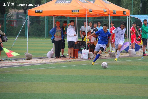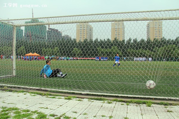 受到大雨的影响原定在8:30的比赛推迟到9:00进行。实力不占优的对手选择了铁桶阵战术。上半场我校持续对对手球门施压,多次击中门框和立柱,没能取得进球。下半场东北石油继续选择严防死守,比赛双方还是没能改变场上比分。90分钟结束双方进入点球大战。
