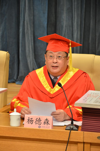 研究生导师代表殷敬伟在典礼上发言。他希望同学们在未来的道路上,强健体魄,磨练意志;常怀感恩之情,常有进取之心;自强不息,实现伟大中国梦想,并祝福毕业生们事业有成,再创辉煌。
