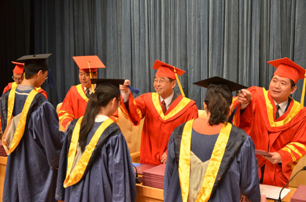 此次典礼上,共有1383名学生获硕士学位,其中4人为外国留学生;49名学生获博士学位,其中1人为外国留学生。学校奖励我校2012年全国优秀博士学位论文提名获得者,2006级材料学专业博士生闫俊及指导教师张密林教授各1万元;奖励省第八届优秀硕士学位论文获得者19人及指导教师每人5千元。校领导、校长助理为受到表彰的师生颁奖,并为毕业生“拨穗”,颁发学位证书。