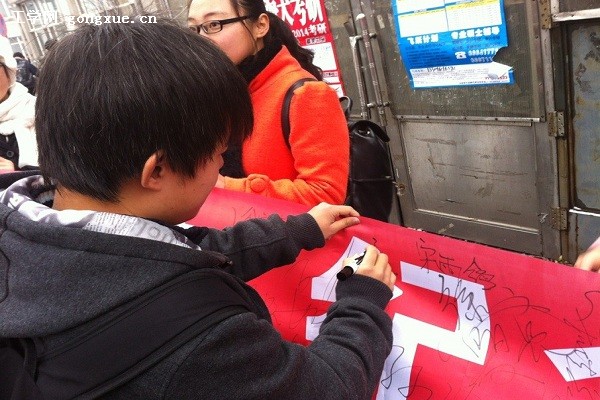 11月14日,核学院女生部全体副部及部员在学生会主席贾子朝、副主席王芳的带领下,于中午12点冒着大雪在大美食堂前进行宣传,并欢迎路过同学在宣传横幅上进行签名留念。另一方面,公关部所有成员在小美门前摆放展板、发放宣传单进行宣传,并且在21B教师楼中张贴精美的手绘宣传海报。据悉,更加精美的电脑制作的彩喷海报将于14日晚印刷制成并在第一时间进行张贴宣传。