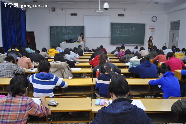 11月11日上午8点至12点10分,人文学院组织大一新生在21B414和415教室进行期中考试。人文学院及思政部全体大一新生参加考试。人文学院团委书记、学工办主任陈大龙到场视察现场考试情况并指导监考工作。
