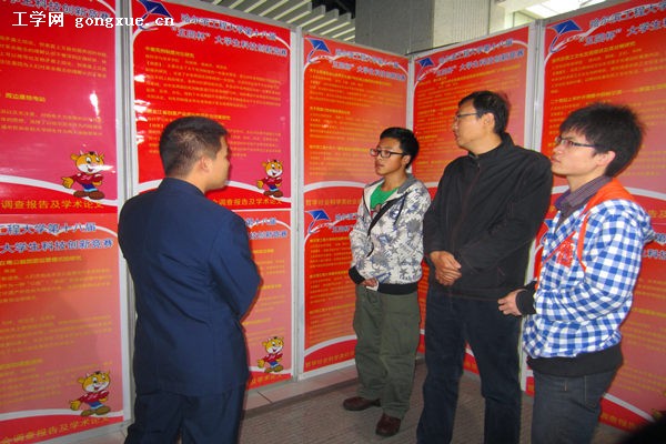 本届比赛人文学院学生积极报名参赛,涌现出一批具有现实意义和科创价值的优秀作品,充分体现人文学子协同创新精神。在现场,人文学院科协组织参赛选手及大一同学参观了其他院系的科技作品展区,同学们饶有兴趣地观看,并就他们感兴趣的问题进行询问。