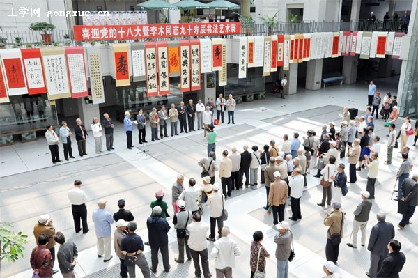 省老年书画研究会,省军区老战士书画会,黑龙江书法养生研究会,市老年书画研究会,省老年美术学校,市委宣传部党史研究室,市书画院,哈尔滨铁路局老干部老战士书法研究班,省诗词协会等组织、单位的老干部们、书法爱好者,我校师生150余人参加开幕式。