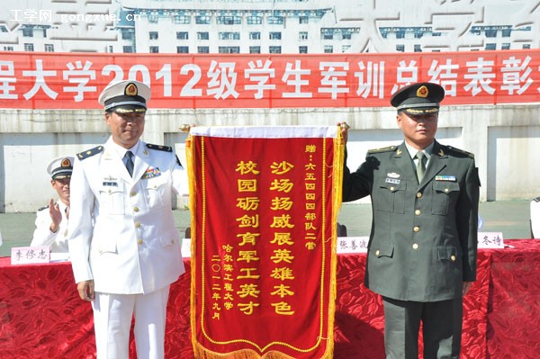 校党委书记谷焕民在仪式上讲话。他对军训工作的圆满成功表示祝贺,对承训部队的辛勤付出表示感谢,对刻苦训练的同学们表示慰问,并向新生提出3点希望:要把军训中形成的好作风、好习惯继续保持下去,把不怕艰难、顽强拼搏的精神转化成今后学习中的不竭动力;要珍惜大学生活的美好时光,发奋学习,努力提高,为将来报效祖国、服务社会积累力量,做“可靠顶用”之人才;要秉承“哈军工”光荣传统,自觉承担起祖国、人民的重托,用激情与活力、拼搏与汗水、智慧与才华谱写人生新篇章。