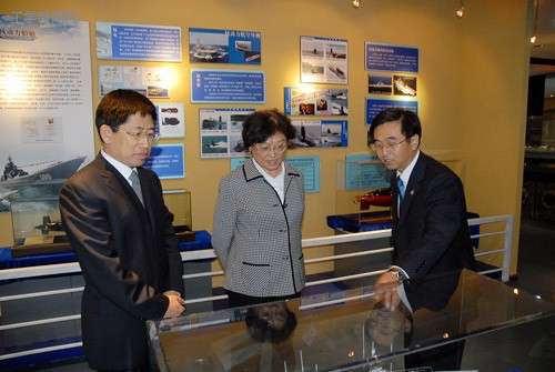 吴启迪一行在党委书记王树权,校长刘志刚等陪同下,在启航活动中心,参观了船舶博物馆、十大名船展、校史及陈赓院长纪念展。交谈中,王树权代表学校欢迎吴启迪副部长来校视察指导工作,并感谢教育部领导多年来对我校工作的指导、帮助与支持。
