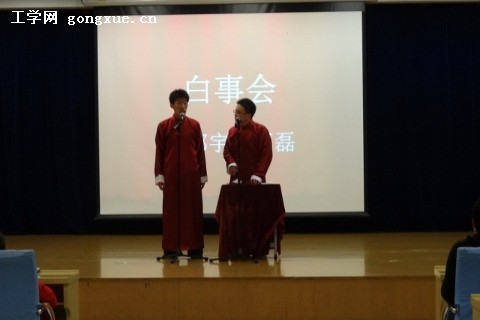 10月30日,在启航多功能厅,由“相声茶社”举办的学校首次专场相声演出圆满成功。武郜宇和丁磊登台献艺。