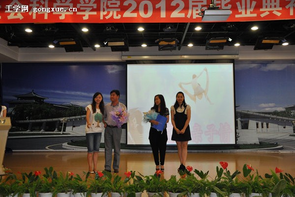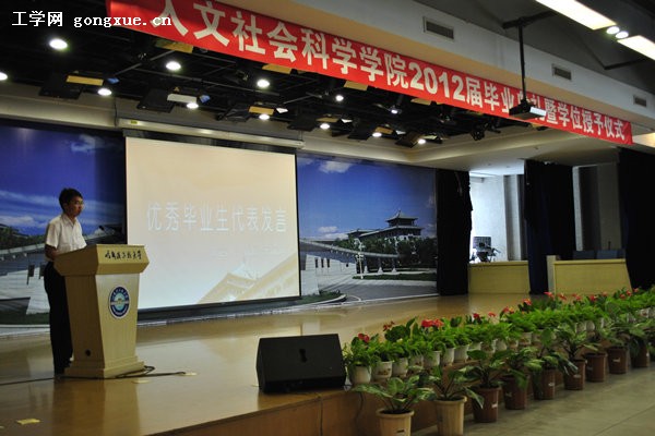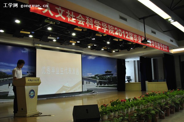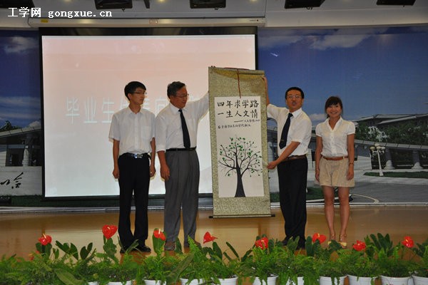 毕业生代表向学院献礼,感谢学院的培训和关爱,并深深祝福学院。人文学院院长金宏章教授发表讲话,向毕业生表达了祝贺和嘱托。他强调母校人才辈出,希望在座各位在人生未来的道路上志存高远,为母校争光,为祖国建设贡献自己的力量。