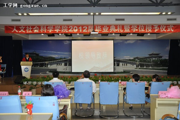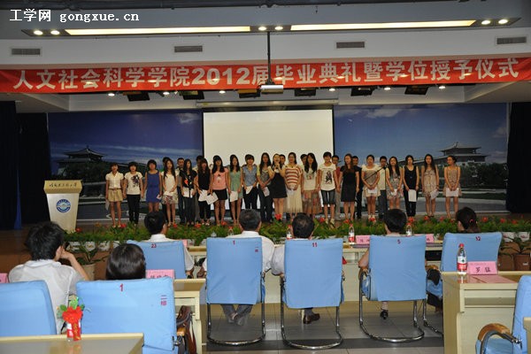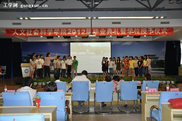 6月29日上午8点,人文学院于启航活动中心多功能厅隆重举行2012届毕业典礼暨学位授予仪式。出席毕业典礼的嘉宾有哈尔滨工程大学副校长杨德森教授、人文学院院长金宏章教授、思政部主任、党总支书记陈坤教授、人文学院党委副书记刘振宇同志、人文学院院长助理丁玮同志、人文学院学生工作办公室主任陈大龙老师、人文学院教务办主任曲晓丽老师、人文学院综合办公室主任张辉老师、人文学院法学系主任罗猛老师、人文学院思政系主任张世洲老师、人文学院081311班班主任陈晓雷老师以及其他教师代表。出席今天毕业典礼的毕业生家长代表有:林景茹女士和崔学勤先生。另外参加此次毕业典礼的还有人文学院全体本科生、2012届硕士以及博士毕业生。