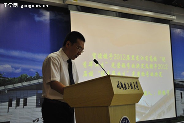 典礼由“不舍同窗情”、“感恩亲子情”、“难忘师生情”、“勤勉奋进志”、学位授予仪式等几部分组成。在嘹亮的军号声中,毕业典礼正式开始。奏唱国歌后,活动进入第二部分——不舍同窗情。在座各位观看了2012届毕业视频《我的大学》并以班级为单位献上《那些年》、《当》、《再见》等歌曲,表达了对母校和同窗情谊的不舍和留恋。接着由刘振宇副书记宣读授予2012届黑龙江省高校“优秀毕业生”光荣称号的决定、授予2012届校“优秀毕业生”光荣称号的决定和2012届博士、硕士研究生毕业的决定以及授予2012届博士、硕士研究生学位的决定。由丁玮同志宣读2012届本科生毕业的决定及授予2012届本科生毕业学位的决定。优秀毕业生代表徐辰、宋成坤同学进行发言。