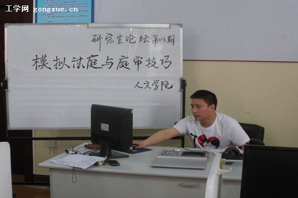 此次论坛由人文学院2011级经济法专业研究生殷少伟主讲,论坛围绕“模拟法庭与庭审技巧”展开,将真实的法庭辩论和庭审过程模拟化,让学生们能够真实的感受庭审过程中程序的安排,语言的运用,同时讲述基本法律知识,以期达到传授法律知识,提高法律自护能力的目的。