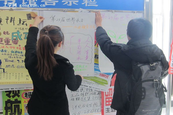 3月22日上午十点,人文学院实践部成员与星火志愿者前往图书馆、学生美食广场、21B等地张贴海报宣传世界水日,旨在提高我校学生的节水意识,让同学们了解到我国水资源紧张的现状。