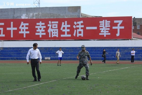 开场之初,船舶工程学院表演了精彩的啦啦操,为双方加油助威。随后,军训团团长李修志和参谋长孙晓明为本场比赛开球,身穿红色球衣的是承训官兵组成的教官队,身穿白色球衣的是船舶工程学院系队。在上半场中,双方势均力敌、你来我往,教官队利用船舶代表队的失误,打入两球,以2:0暂时领先。