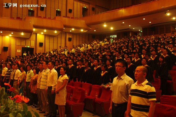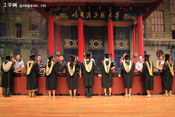 在哈尔滨工程大学11号楼门前“严谨求实,勤奋创新”学风背景相得益彰的衬托下,在熟悉的《青春纪念册》回荡声中,哈尔滨工程大学船舶工程学院2011届本科生毕业典礼于6月29日上午8时在启航剧场拉开帷幕。
