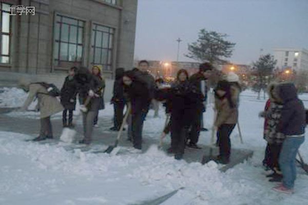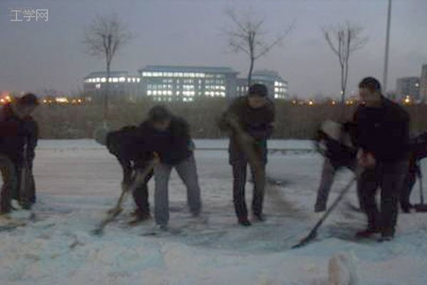 11月16日下午,船舶工程学院2010级硕士研究生响应院党委副书记张为峰的号召,在党员和积极分子的带领下,自发来到船海楼前清理积雪。