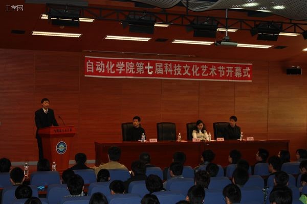 王嘉男开幕词。他强调:“实践与创新”是当代大学生综合素质与学习能力的重要反映,自动化学院一直在为学生营造良好的综合科技文化氛围。王嘉男鼓励大家积极参与此次活动,展现自动化学院学生的风采。自动化学院团委学生会主席李彬向同学们介绍第七届科学文化艺术节的内容,并宣读了倡议书。
