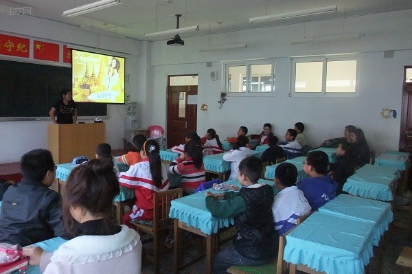 三位泰国志愿者用略显生疏的中文为孩子们勾勒了一个真实、现代、美丽的泰国。在九十分钟的课堂上,孩子们听得津津有味,课堂气氛十分活跃。尽管孩子们不时提出这样那样的问题,给留学生志愿者带来了或大或小的挑战,但是志愿者们都能用诙谐幽默的语言回答,给整堂课增添了趣味性。她们还向孩子们教授了简单的泰语。下课时,孩子们用简单的泰语依依不舍地和我们的志愿者告别。