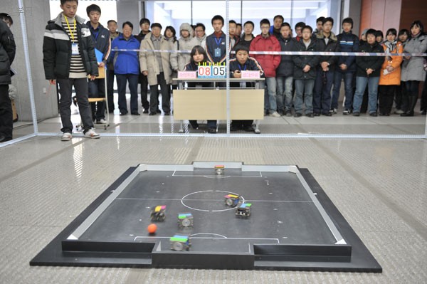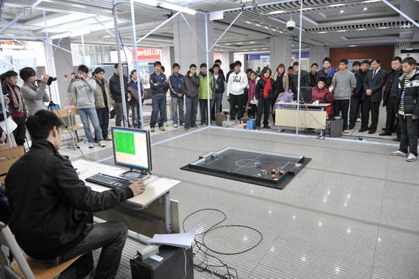 我校曾在2008年中国机器人大赛暨RoboCup公开赛中获得空中机器人冠军,水下机器人冠、亚军,并在以往的竞赛中多次取得优异成绩。今年,我校发挥主场优势,派出多支代表队参赛。其中,“海天队”参加了空中机器人比赛旋翼组的比赛,启航一队、启航二队参加了机器人水底采矿比赛大学组比赛,延续了我校在空中和水下比赛的优势。在FIRA仿真组比赛中,我校加强参赛力度,派出“三个火枪手”、“快乐飓风”、“远航”、“ADE”4个代表队参加了FIRA仿真组(5:5)的比赛,“ADE”和“快乐飓风”参加了FIRA仿真组(11:11)的比赛。