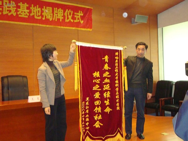10月31日,黑龙江省血液中心大学生社会实践基地在我校成立,共建揭牌仪式于上午10时在启航活动中心学术报告厅举行。