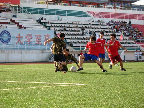 第七届“军船杯”足球赛于9月7日下午3时于校北体育场开赛,由承训官兵对阵船舶学院足球队。