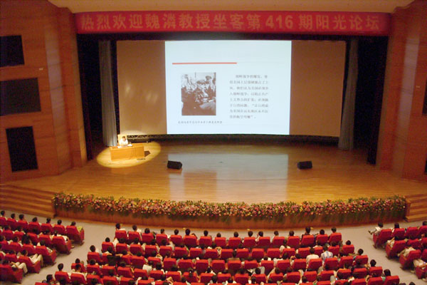 讲座开始前,魏潾肯定了我校“阳光论坛”的影响,告诉同学们在大学时期要培养能力,开拓思路和眼界。