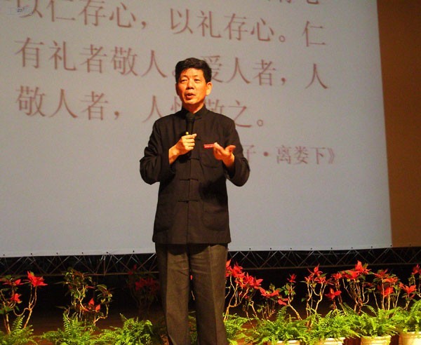 整个剧场座无虚席,在讲座过程中彭林教授时而引用古语,时而旁征博引,时而娓娓道来,不乏风趣、幽默,与现场同学共同探讨了“中西方文化差异”、“礼乐文化的旨趣何在?”、“人怎样实现自身和谐”、“礼是处理与群关系的准则”、“北京奥运,我们行哪国礼仪?”、“学会尊重,从鞠躬做起”等问题。中华民族素来就是礼仪之邦,有着五千年的灿烂文化,目前中华文化的流失已经到了触目惊心的程度,“民族的存亡,其根源在处理与群关系的于文化的存亡”,彭教授呼吁大家从自身做起,从身边做起,从一言一行做起,每一个人都要自觉站出来,毅然决然捍卫本土文化。细节决定品质,“自然科学技术可以从西方引进,但民族精神不可能从西方引进。”
