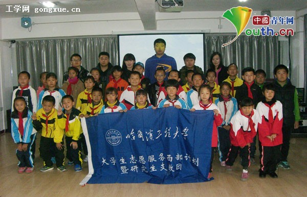中国青年网北京10月29日电(记者李彦龙)27日上午,汪清县第一实验小学、县第三小学、县第四小学18名受资助的品学兼优小学生在哈尔滨工程大学第四届研究生支教团六名成员的带领下来到团县委青少年活动中心参加由“舒蕊语言艺术中心基地”舒宇老师为同学们带来的课外培训课程,团县委书记金波等出席活动。