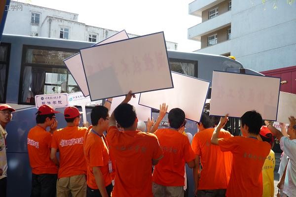 自动化学院本着方便新生和家长的原则,让志愿者们统一穿着醒目的橙色工作服装,当他们活跃在迎新现场和学校各场所时,大家都亲切的叫他们“橙子”服务队。