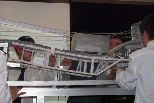 与以往不同的是,本届比赛首次采用了动态加载的方法,用载重的小车从桥梁上经过,并把桥的跨度扩展到了1米。预赛将选出的30个优胜者参加本月28日下午的决赛。决赛的优胜者还将有机会代表学校参加“第一届黑龙江省结构设计大赛”的选拔赛。