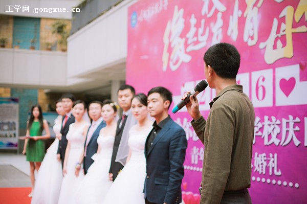 9月1日是学校第63个校庆日,“缘起校友 情定母校”青年校友集体婚礼在启航活动中心阳光大厅举行。来自动力学院、自动化学院、计算机学院、信通学院、理学院、核学院的4对校友以人生重要的典礼寄托对母校的深深情谊。