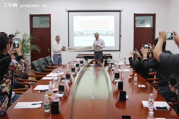 我校图书馆负责人简要介绍了我校图书馆的资源与服务和“学习资源中心、知识服务中心和文化涵育中心”的功能定位,斯科特·希曼对我校图书馆在新的历史条件下进行的新思考和新做法表示赞许。他介绍了俄亥俄大学图书馆在过去7年里电子资源建设和读者借阅数据的变化,以及图书馆在创新服务方面的新做法,学科服务的运行状况和与之匹配的学科馆员培训机制、俄亥俄州图书馆联盟在文献共享和资源建设方面的作用发挥。他说,知识服务、用户体验和文化传承是全球图书馆的共同使命,希望今后双方深入交流,建立起更多更广泛的合作。