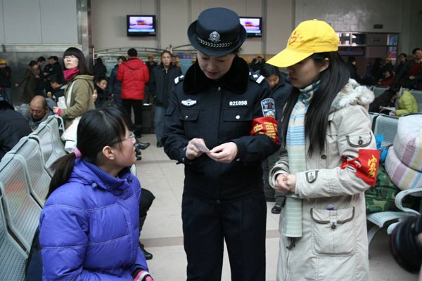 1月4日,我校校团委与哈尔滨铁路公安局联合开展了2009年“蓝盾”大学生青年志愿者客票调查活动。我校30余名第24届世界大冬会志愿者来到哈尔滨火车站,协助客票调查的民警对候车旅客手中车票来源进行调查。