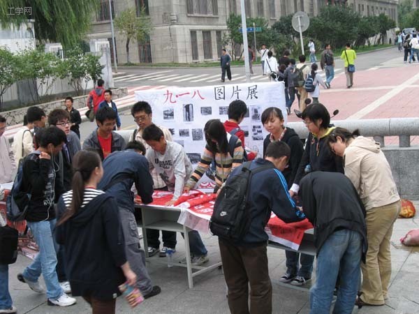 9月18日中午,船舶学院在大学生美食城门口开展“不忘国耻九一八”签名活动。