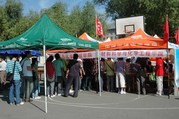 帐篷为排队等候的新生遮挡骄阳