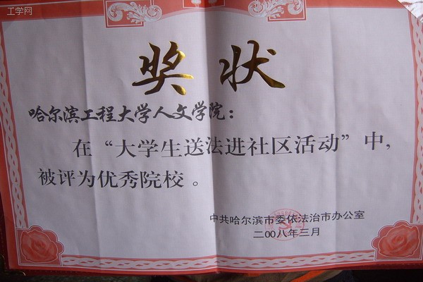哈尔滨市委依法治市办公室发起的关于评选2006-2007年度哈市大学生送法进社区优秀院校活动,目的在于为深入贯彻落实哈市第五次法制宣传教育工作会议精神,进一步推进依法治国进程,充分发挥高校法律专业人才优势。“大学生送法进社区”活动是深入推进“五五”普法工作的新举措,“五五”普法期间全市范围内广泛开展了此项活动。通过整合法制宣传教育资源,充分发挥驻哈高校法律专业人才优势,组织在校大学生进入社区开展法制宣传教育和法制实践活动,达到提高在校大学生的法制实践能力和增强广大群众法律素质的双赢效果,为推动哈尔滨市经济社会更快更好的发展创造良好的法治环境。