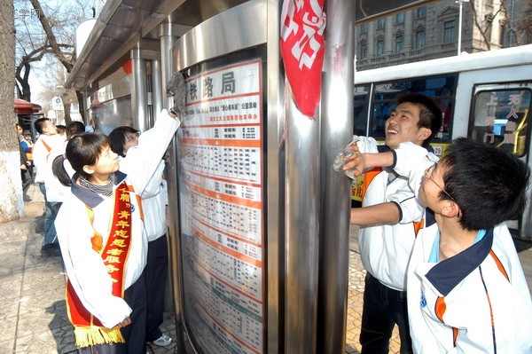 本次公益活动有200多名青年志愿者参加,志愿者们以饱满的热情,擦洗了经由哈尔滨工程大学的所有公交线路的全部站牌,共计约300多个站地,600多块站牌。看着一块块被擦亮的公交窗口,成功的笑意不由地挂在了年轻的志愿者们的脸上。
