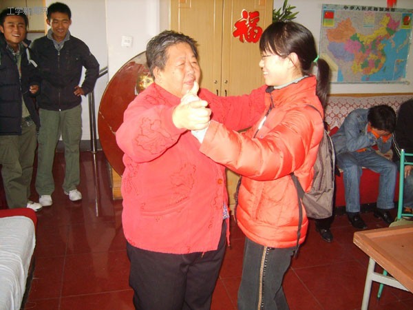 同学们为老人带去了水果,带去了关怀,更带去了一颗颗炽热的心。大家陪老人聊天,下棋,为他们收拾屋子。多才多艺的老人甚至还来了雅兴,教同学跳舞,活力与年轻人相比毫不逊色。最后,同学们为老人表演了小品《感恩》。