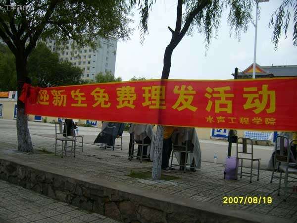 此项活动由水声学院团委主办,旨在为广大新生提供方便。由于要参加军训,所有男生都必须留短发,学院为此与开宇美容美发化妆学校联系,给大一新生带来了一个别开生面的见面礼!