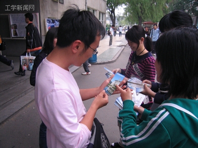 活动主办方制作的一套八枚校园文明标语的精美书签,向同学们免费发放了近4000枚。参与活动的同学表示,以书签的形式宣传校园文明更贴近同学生活、生动有教育意义,而且精美的书签还有收藏价值。