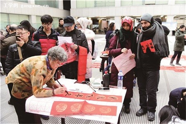 为喜迎新春佳节,弘扬中国书法传统文化,1月17日,机关党委、离退休处联合举办“把祝福带回家——迎新春·送春联”活动,校内9位书法爱好者在启航阳光大厅现场为全校师生书写春联。活动现场,书法爱好者们挥毫泼墨,吸引众多师生排队求字。