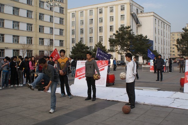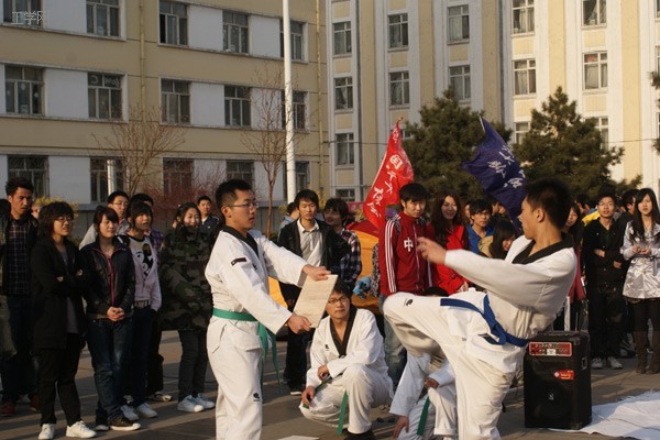 万物争春的季节,各社团焉能不各展风才?各社团结束短暂的征程,再次回到奥列霍夫广场,在主持简单介绍之后,开始了各社团的表演秀。首先是太极拳社团的双人太极表演,两位身着白色会服的同学严肃认真地伴乐打拳,动作像模像样有大师风范,让人不得不佩服他们的功力;接下来是手语协会献上的手语表演《全新的你》,那一刻,世界好像突然凝固了,只听得见那感人的朗诵,只看得见那专注而虔诚地手语,让人有一种感动得想哭的冲动;感动未尽,被光荣地评为2010“绿色标兵”的绿色协会带来了深情对唱《屋顶》,给现场抹上了一种别样的温馨;之后,花式篮球协会和双节棍协会也不甘落后,相继献上了精彩的表演,尤其是双截棍表演,身着短袖的主席,左右手交替,手脚并用,动作娴熟有力,赢得现场连连拍手叫绝;当然精彩还有更多,接下来博思商协会的对唱也给人又一次听觉享受,而跆拳道协会的集体表演-踢板,则让人真切感受到何为一脚见功夫;最后在吉他协会优美的吉他声中,主持人意犹未尽地宣布结束。