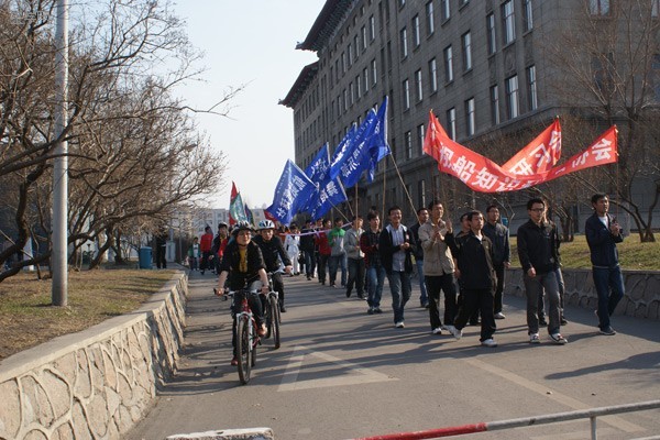 一切美好的结局都有赖于良好的开端,每一个好的开端都让人印象深刻。在启航阳光大厅校团委书记的慷慨陈词之后,第13届校园巡礼月正式开始。出了启航,由各社团成员组成了一支浩浩荡荡的队伍,按照惯例从奥列霍夫广场出发,开始了他们绕校园一周的“征程”。一路上,风很大,各社团的会旗或宣传旗迎风飘扬,仿佛在为这一届社团巡礼月加油;虽然风有点冷,可同学们却没有丝毫退让,那一张张灿烂的笑脸就是他们活力的象征;那一阵阵欢快的笑声就是他们热情的见证;那一个个铿锵有力的步伐就是他们昂扬奋进的标志;我想,不管是参与其中的还是随行围观的人,这次“伟大征程”都会给他们留下深刻的印象。