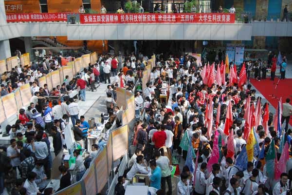 “五四杯”大学生课外学术科技作品竞赛是一个展示大学生科技创新能力的平台。在“五四杯”的带动下,我校学生课外科技创新工作不断发展,形成了“以创新精神与实际能力培养为目的,以普及与提高相结合为原则,以学生科研立项和科技竞赛为基础,以创新基地和配套政策作保障”的系统工作思路。五月中旬,第十五届“五四杯”在我校启航活动中心阳光大厅再次拉开帷幕。与往年不同的是,今年的“五四杯”开幕式上还进行了我校“大学生创业联盟”揭牌仪式、首届计算机仿真机器人大赛初赛暨表演赛、智能程控小车竞赛和决策模拟大赛决赛。现在就请大家一同随我来享受这次科技创新的盛宴吧!