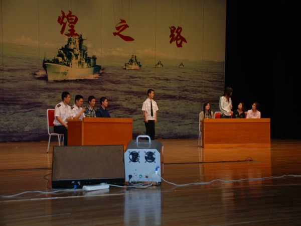 随着国旗护卫队庄严的迎军旗仪式,晚会正式开始。整场晚会带着鲜明的国防教育色彩,将生活中的国防生真实地展示给观众:诗朗诵《海韵》展现了国防生的内心独白;原创吉他弹唱《情伤》表达了他们的情感生活;话剧《向中国人敬礼》抒发了他们无比的爱国热忱;戏曲联唱令票友们一饱耳福;小品相声更令观众捧腹不止。此外,观众还共同回顾了海军建军60年的发展历程,观看09年海上大阅兵,感受新时代中国海军的热情与活力!